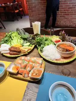 Environment: The restaurant is full of Vietnamese nostalgic style, simple and comfortable decoration, suitable for families or friends gathering. The squid hot pot uses fresh squid and is served with a spicy soup. It is full of freshness and basically every table will order it! The ribs are crispy on the outside and tender on the inside. The lemongrass chicken meat is smooth and tender, which goes well with rice.