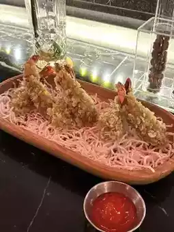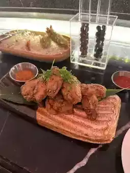 We ordered a variety of dishes, including the mouth-watering chicken wings, perfectly cooked fried prawn, and a delicious foie gras with beef burger. Each dish was bursting with flavor and complemented the drinks we ordered perfectly.