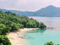 Nai Yang Beach is located in the island's extreme north. It is close enough to the airport that one may sit and watch jets arrive and go without being disturbed by their noise. The vast expanses of white sand lined by strangely shaggy Casuarina trees are far from being a conventional tourist brochure, sterile, palm fringed paradise, but they are really nice.