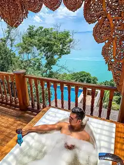 🏝️All rooms have a balcony with a bathtub, see the sea view and have carved teak wood window frames, beautifully carved patterns