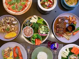 (Premium menus such as sirloin steak, Wagyu, ribeye steak, Kurobuta pork chop, salmon steak, many more menus to choose from, ancient Thai food, pizza, spaghetti, dessert)