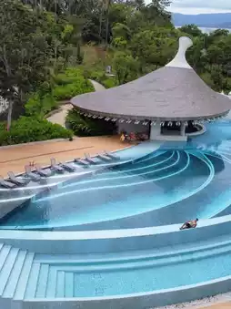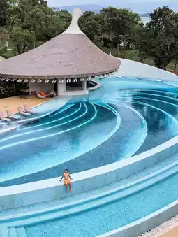 A superstar stopped by to relax on Coconut Island, Phuket Province this weekend. The reason we chose to stay here was because of this shell-shaped swimming pool🐚. It’s a stunningly beautiful pool🏊♂️. It’s the most beautiful swimming pool that a superstar has ever stayed at. Let me show you a clip as a teaser first. I’ll post more review photos later.