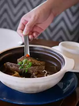 🥘 Bak kut teh with Chinese herbs, served in a clay pot Stewed with Chinese herbs 180.-