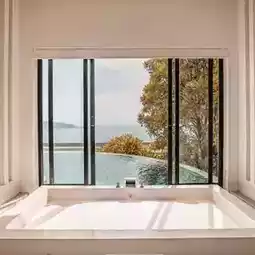 You can see the sea as far as the eye can see. You can open the door and walk straight into the pool. It's so cool, mom.