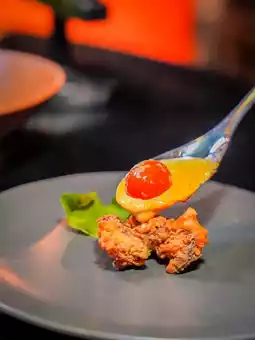 🥘 Crispy Duck Chu Chee - Crispy fried duck meat, crispy outside, soft inside, served with Chu Chee curry, the curry flavor is very well-rounded.