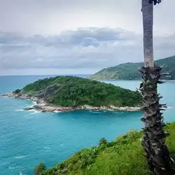 Promthep Cape is one of Phuket's most beautiful sunset viewpoints. It is located in the southern part of Phuket Island, approximately 2 kilometers from Rawai Beach and is a reference point for Thailand's sunset time. Laem Phromthep has a cement edge to sit and watch the sunset. If anyone wants to explore Laem Phromthep, they can walk to the tip of the cape. There is a path down to the bottom. When going down to the bottom, you will see emerald green water. When there is a wave crashing into the rock, it will create a beautiful white bubbles.