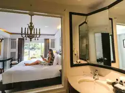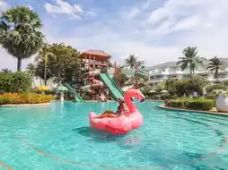 🌴Thavorn Palm Beach Resort is a super chic accommodation that has a cafe, restaurant, ice cream shop, zoo in the hotel, a large swimming pool with a giant slide as high as a 4-story building