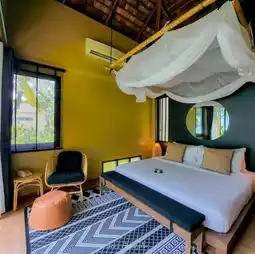 If anyone is looking for a peaceful, private accommodation, close to nature and the sea, this place is definitely the answer. Because the hotel here is located near the mangrove forest and Panwa Beach, the atmosphere is quite peaceful and has a very natural feel. We can walk on the beach in front of the accommodation and see the beautiful sunset from the front of the resort.