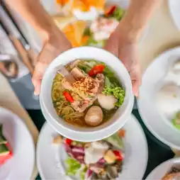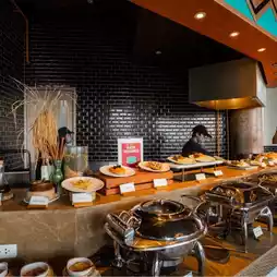 The restaurant is next to the swimming pool. It serves breakfast, lunch and dinner. Normally, the room includes breakfast, which here is a buffet, which has a variety and is very delicious. Sometimes, there are special dinner sets, such as shabu, to please Thai people.