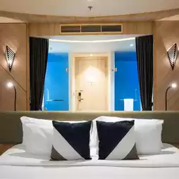 The SIS Kata is located near Kata Beach on a hill in Mueang District, Phuket Province. The resort uses blue-green, which is the color of the sea in summer, to decorate the resort. Just entering the resort, you feel the summer.