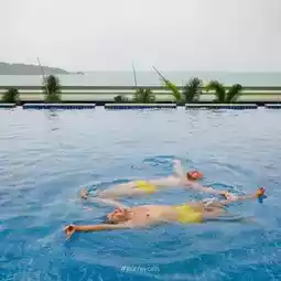 อิ่มท้องแล้วรอย่อยสักพัก ก็กระโดดลงสระว่ายน้ำได้เลยค่ะ