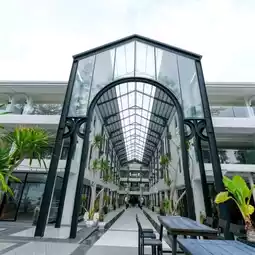 This is a resort with a very distinctive style with a tall triangular building in front. When driving past Patong Beach, it stands out from afar.