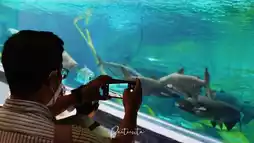 For those who love exploring the underwater world but don't want to go diving and get wet and black, come here. Come this way, Aquaria Phuket. We can walk and relax, watch fish, and I guarantee that you will be very impressed. You will gain knowledge and relieve stress very well. You can walk all day without getting bored. There are many show times and you can also get close and feed them.