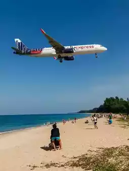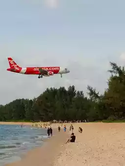 Mai Khao Beach is located in the south of Phuket Island, and from the very early morning a lot of people gather here to watch the planes land at the local airport. It's just an incredible sight, especially if a really big plane, such as a Boeing 777, comes in to land.