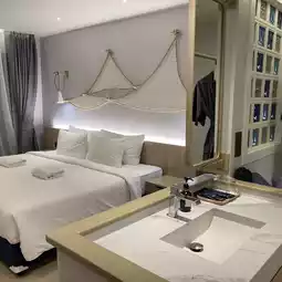 Panwaburi Beachfront Resort, a good hotel located in Cape Panwa. Standard sized rooms, beautiful and clean. There is a long swimming pool along the hotel, fun to swim in. There is also a swimming pool on the rooftop. In the evening, the view is beautiful. - Breakfast is delicious and there is quite a bit to choose from. I recommend the rice soup, very delicious. The coffee is also delicious. - The beach is not very big and there is a road separating it, but you can swim. #Phuket hotel