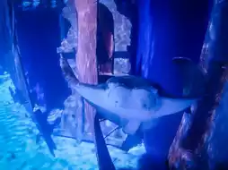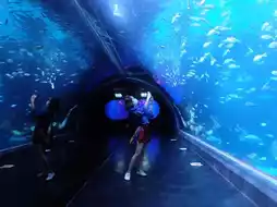The highlight zone is in the large tunnel where there are sharks and big fish swimming around for us to see up close. It's like diving down into the sea. Plus, you can take close-up photos.