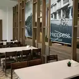 The lobby gives a warm feeling. The cool thing is that behind the reception counter, a Chinese abacus is used as decoration. As for the guest rooms, the room area is spacious, the bed is comfortable, and the facilities are complete. There is a corner for working or reading a book in a relaxing way. The decorations in each room are different. The hotel reflects the history of Phuket through paintings and room decorations. It is like reminiscing about the past through various images. There are 2 swimming pools and a fitness center. The staff here are lovely and take good care of you.