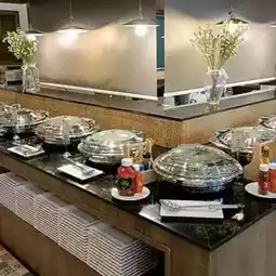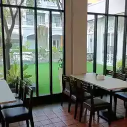 Breakfast is also quite good. The price is not expensive. It is considered complete. It is a simple buffet with local food, bread, tea, coffee, fruit, and rice soup. The dining room is opposite the reception building. In addition, the hotel also has a banquet and conference room for use. It is a luxurious and classy neo-colonial style room decorated in blue tones as well.