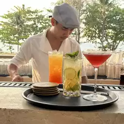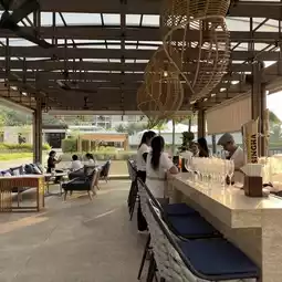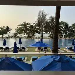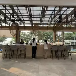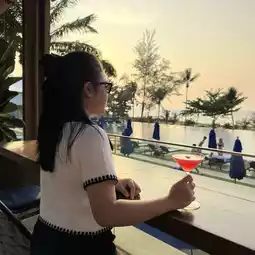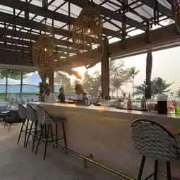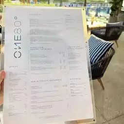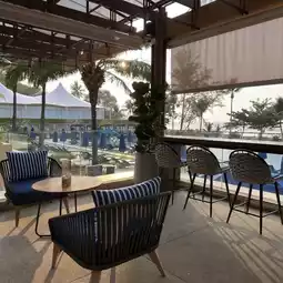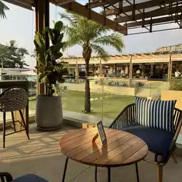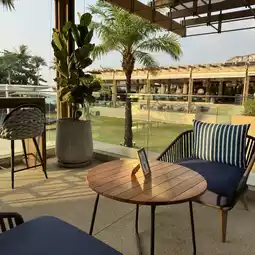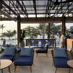 Summer trip One 80 days Eighty poolside bar, super chic in the five-star luxury hotel Hyatt Recency Phuket, Kamala Beach. Open-air bar by the pool, overlooking the sea, you can come and chill all day. There is a menu of drinks, mocktails, cocktails, snacks, or if you stay here in the evening, come and sip a drink, good atmosphere, cool down.
