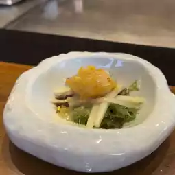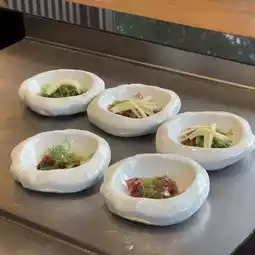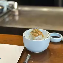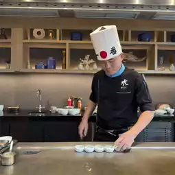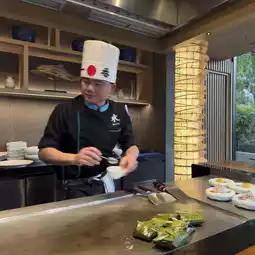 MIZU, a Japanese restaurant in Teppanyaki style, is located in the five-star luxury hotel Hyatt Regency Phuket, Kamala Beach. Even if you are not staying, you can come here. The restaurant serves in a hot plate style, meaning the chef will cook and we will eat along with the chef's fun show. The menu will be a set according to what the chef will cook for us. Sit and eat and watch, enjoy. The food will be served hot from the stove. Before you start eating, sake will be served to customers.