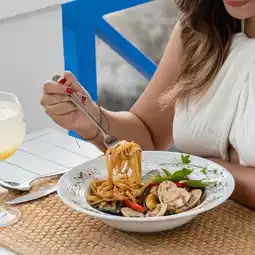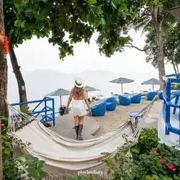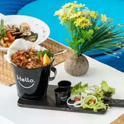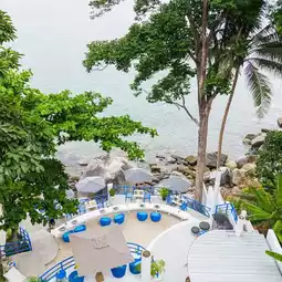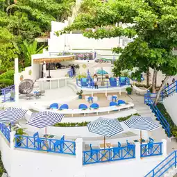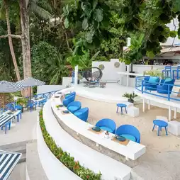 The Reef, a restaurant and cafe Phil Santorini is decorated in white-blue tones, giving you the feeling of being in a famous city in Greece. The shop is located in Zenmaya Oceanfront Phuket hotel 🌴 right at Kalim beach.