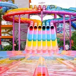 There are many rides to choose from, including SuperBowl, a high slide into a giant tub, Boomerango, a giant slide that requires you to slide down and swing back and forth, Whizzard, a rainbow slide with 6 channels and 6 colors, where you can race your friends next to you.