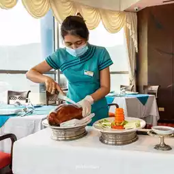 For lunch, I highly recommend the Chinese food at The Royal Kitchen. The dishes are abundant, but don't miss the Peking duck, which is served fresh. As for me, I ordered the beef skewers with vegetables, which was a new and exciting experience 🥢