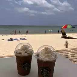 For those who are bored with the Starbucks atmosphere in the mall and want to try a change of atmosphere, you must come and try Starbucks here. Because this place is located by the sea, the atmosphere is awesome.