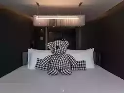 This is a hotel that Nuch really wanted to stay at. This time, she finally got it. The hotel concept tells a story about photography. We will see classic old cameras decorated around the hotel. The signature that everyone knows well is this plaid bear.