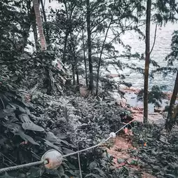 - The way down to the beach is quite steep, but there will be a rope to help you support yourself. The trees are very overgrown and there are sharp trees that can cut your arms and legs. If you go down to the rocks below, be careful when climbing the rocks.