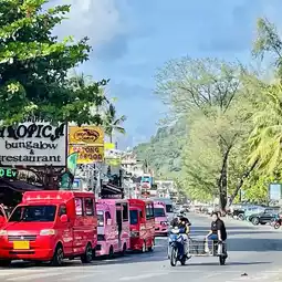Patong is a famous tourist area in Phuket. The beach is very lively during the day and offers different water sports. In the evening, restaurants, bars, night markets, and pedestrian streets are filled with tourists, making it suitable for travelers seeking lively and nightlife.