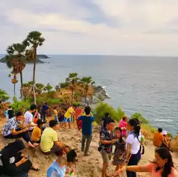 Laem Phromthep is a curved cape that extends into the sea and has a large group of palm trees. The tip of the cape is called Laem Chao. Tourists can walk down to the tip of the cape. When visiting Laem Phromthep, you should come on a day with clear skies, good weather, and few clouds because you will see the large sun slowly disappear into the sea. It is a beautiful image that becomes a memory, especially if you come with your partner or lover. It is the best moment ever.