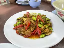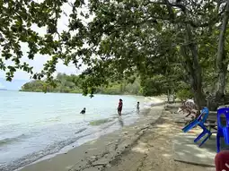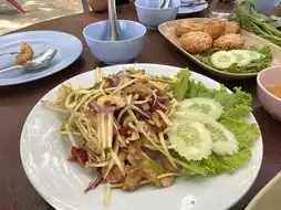 Phuket people like to bring their families and children to play in the water at this beach because the water is shallow. You can sit and relax while eating. The children can play in the sea nearby. Nuch likes to come with her family. This is a restaurant that she visits very often.