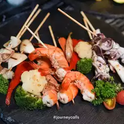 Enjoy the deliciousness of barbecue skewers, with a choice of pork, beef, chicken, squid, shrimp, sausage wrapped in bacon, and many more. Served with delicious dipping sauces, ranging from barbecue sauce, seafood sauce, jaew sauce, to mala sauce. Come and try it out