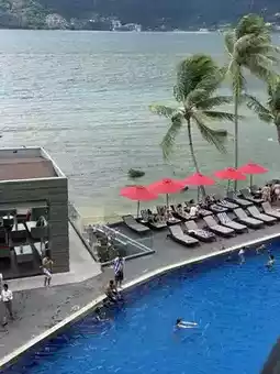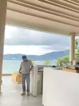 Hello everyone, today I will take everyone to travel to Phuket province. Today I will take everyone to a cafe next to the sea. You can see the sea. There is also a five-star hotel here. Inside the hotel, there is a cafe called samutr bar by amari phuket. Here you will find new things that you have never seen. The atmosphere inside is very good. I recommend you don't miss this place.