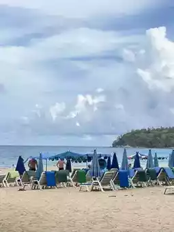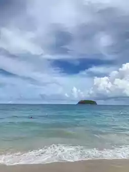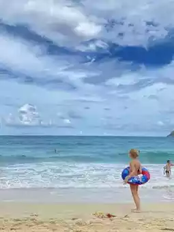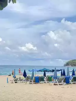 Hello, today I will take everyone to visit Phuket Province. Today, I will take everyone to visit a province with beautiful beaches in Phuket. Here, there is a beautiful sea with many tourists coming to play in the water. That is Kata Beach. Here, there will be tourists who come to sunbathe and play in the water or just relax. Because there are food for sale around. There are also beautiful photo spots.
