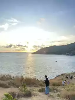 Hello everyone, today I will take everyone to visit Phuket province. Today, I will take everyone to watch the sunset at a new check-in location in Phuket, which is the Phuket Windmill Viewpoint. Many people come here to wait for the sunset because the atmosphere here is very beautiful. You can see boats and guides. You have to come here early because there is a parking lot on the hill. I recommend coming around 4-5 p.m. until the sun sets. Come on! 🏖️🏝️☀️
