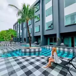 When you visit Phuket, stay at foto Hotel Phuket. It is a unique hotel decorated in black and white tones, located by the sea. There is also a plaid bear, which is the hotel's signature, waiting to welcome you at the entrance.