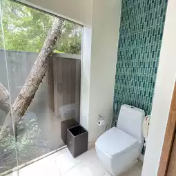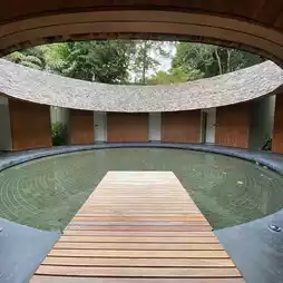 Cake stayed at Pool Villa No. 19 One Bedroom Pool Villa, 117 sq m., emphasizing privacy, Bathtub and plunge pool, bathroom that emphasizes the view of nature, His & Her sinks, and the amenities are the Tokyo Milk brand, which smells good.