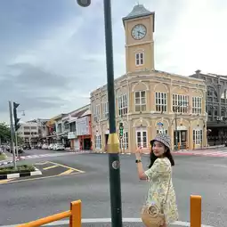 Phuket Clock Tower or Phromthep Clock Tower is located at Surin Circle. It was built in 1907 and is over a hundred years old. The clock tower is designed in the Sino-Portuguese architectural style. It is a two-story egg-white building that stands out with its four-story clock tower and its roof resembling a hat. The arched doors and windows are unique to Sino-Portuguese architecture. At night, the clock tower is decorated with lights, making it a great place to take a walk and enjoy the night atmosphere. It is another photo spot in Phuket that tourists should not miss. #PhuketOldTown #oldtown #Phuket
