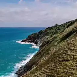 🏝 Honestly, the hardship will disappear when you get there. It is worth it. Looking at the sea is very beautiful. The sea water crashing into the shore from a distance is worth it. You can see many islands (Koh Yao Noi, Koh Yao Yai, etc.) but the wind was very strong on the day we went. But we were still able to fly a drone. On the way back up, there will be an auntie selling water. We bought all of them. The people around there are so kind. I love them so much. 💗
