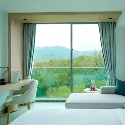🍃 The room that I stayed in was a Deluxe Garden View room, which is included in the package. The highlight of this room is the view of the green garden that is pleasing to the eyes. You can open the door to receive the natural breeze, giving a feeling like being in the middle of the forest. The staff at the hotel said that some days there are about 10 buffaloes coming out to eat grass, very natural. But on the day that I came, it rained, so I didn't have a chance to see it.