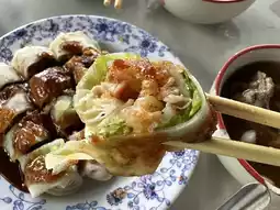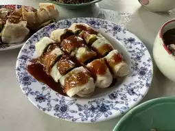 Popia Lo Rong: It is a delicious fresh spring roll with a dipping sauce that you can dip yourself or pour on the spring roll. The filling contains vegetables and roast pork.