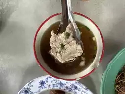 Mee Hoon Pa Chang: Pa Chang is not the name of the seller, which many tourists from other provinces misunderstand. "Mee Hoon Pa Chang" is the name of dry fried noodles served with pork bone soup. It tastes a little salty. Mee Hoon can be seasoned to taste. Mostly, soy sauce, sugar, vinegar, and chili powder are added for those who like it spicy. Pork bone soup is delicious when a lot of pepper is added.