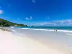 Because it is a fairly wide beach and is close to the national park, there are many different atmospheres. During this time, the tide is high and the sea is beautiful. Take a walk in the morning with a cool breeze. Go find something to eat at "Ching Pla Market". There are fried chicken, rice soup, steamed fish curry, tea, coffee, etc. that the locals bring to sell. It is very delicious. It is a breakfast where you can see the beautiful sea view up close. When the tide goes down in the evening, the sunset is beautiful. There are "street food" with push carts selling fruit, seafood, roti, etc. There are people playing "Kitesurfing". It looks fun.