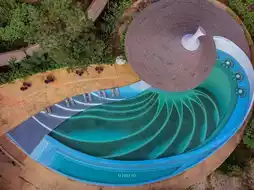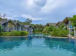 The decoration here emphasizes earth tones that help you feel relaxed. For the rooms, this time we stayed in the One Bedroom Garden Access room. The room is surrounded by a garden, lush green trees and playground equipment for children. Here, there are complete facilities, including a restaurant, bar, various activities and a large signature shell-shaped communal swimming pool. The tile shades are beautifully shaded with light and dark shadows similar to the blue of the sea.