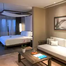 This is a pool villa with the most beautiful view. The hotel rooms all look the same. The only difference is the size of the pool and the view. The bath products in every room use the famous spa products. THANN, I must say, are very fragrant, very good, very impressive. You can ask for more every day.