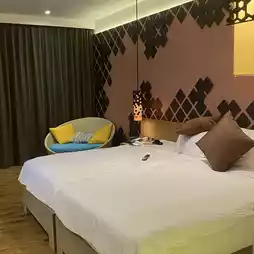 As for the room, we booked a deluxe sea view. The room is quite far from the lobby. But when we arrived in the room, it was very quiet. The bed is very big. It is a 7-foot bed. I think 3 people can sleep comfortably. The bathroom is separated into wet and dry areas very well. There are complete equipment. Breakfast is very good. The staff provides good service. There are many photo spots. It really meets the needs of photography lovers.