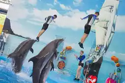 After the performance, you can take a photo with two dolphins for 400 Thai baht, with a maximum of four people in the photo. You can also touch the dolphins. Swimming with the dolphins for ten minutes costs 5000 Thai baht. You must try it out, as it is really difficult to get up close with dolphins in China.