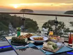 Twilight Sky, the rooftop restaurant at The Sis Kata Beach Phuket, offers a view of Kata Beach and Koh Pu. The atmosphere is amazing and the view is amazing. Especially when the sun sets in the evening, the view is beautiful. It is a restaurant near the swimming pool. It opens during the day. It serves Thai single dishes. In the afternoon, there is Afternoon tea. In the evening, there is dinner. I must say that bringing your lover here is very romantic.